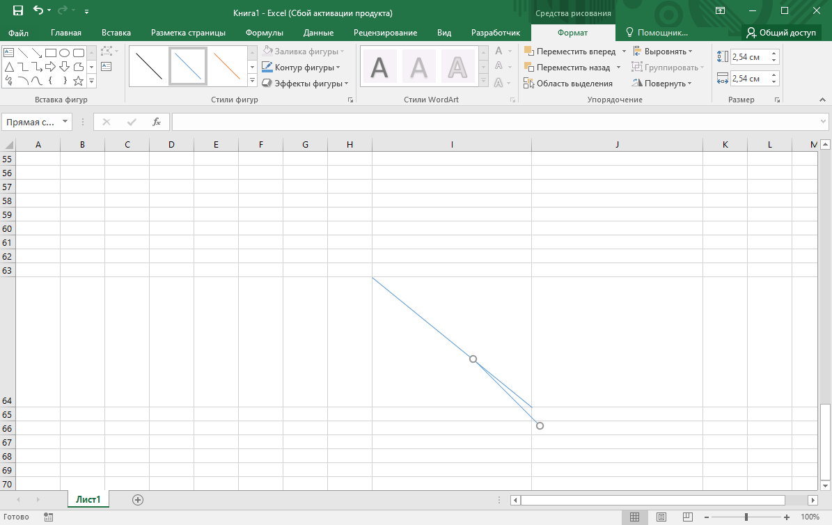 - Затем рисуем эту линию в нужной нам ячейке. По отношению к ней мы можем использовать различные варианты форматирования: изменять оттенок, толщину, тип линии, вставлять эффекты.