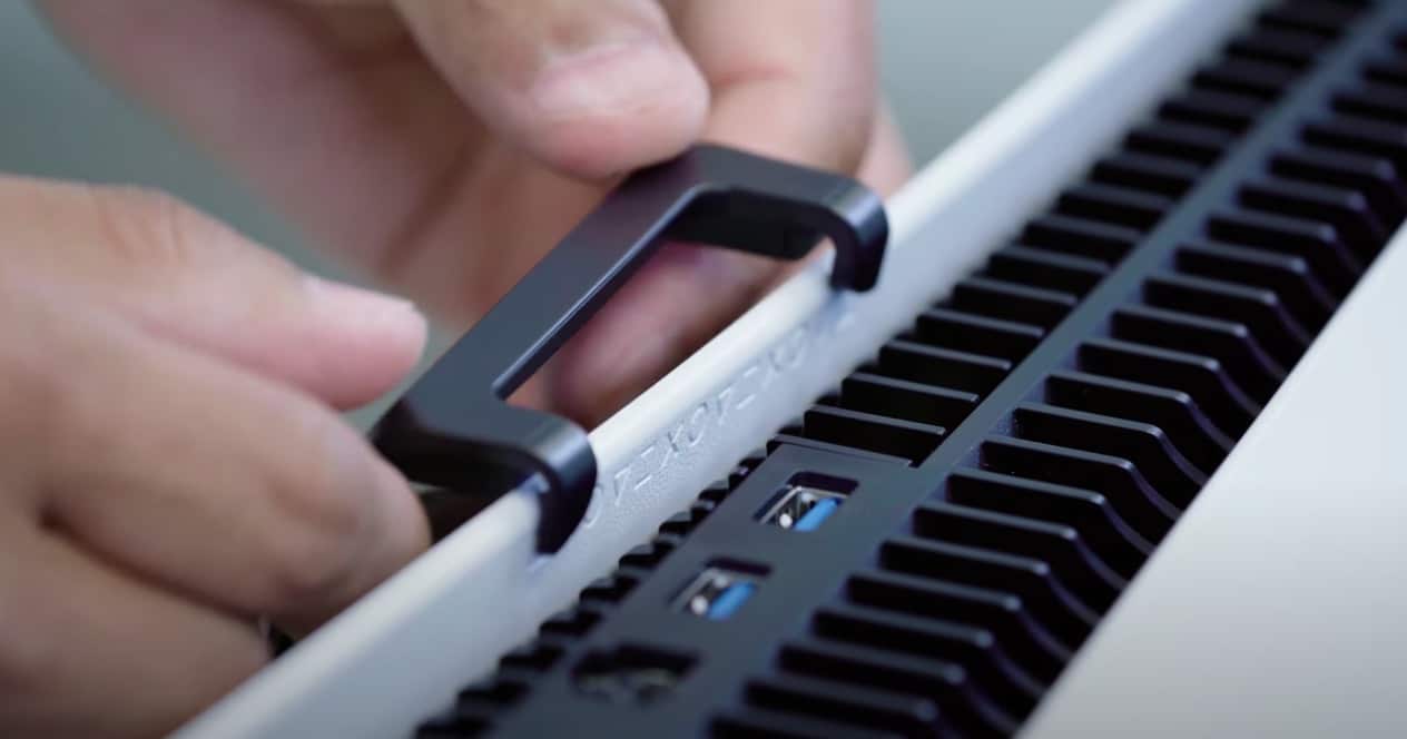 В связи с этим, чтобы не потерять крепежный винт и не испортить эстетику консоли, в основании имеется отверстие для хранения винта и заглушка, с помощью которой можно скрыть отверстие, оставленное в нижней части консоли. Незначительные детали, но они показывают заинтересованность в поддержании чистого дизайна на консоли.