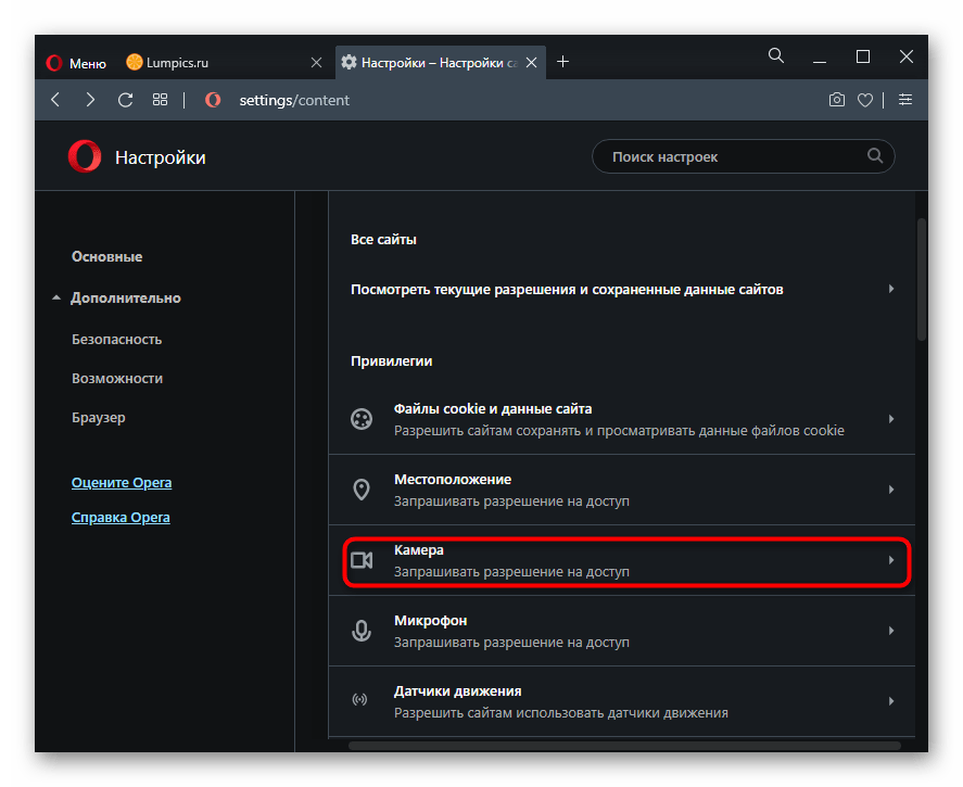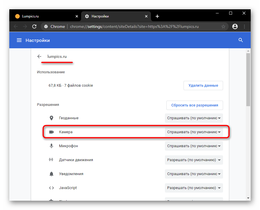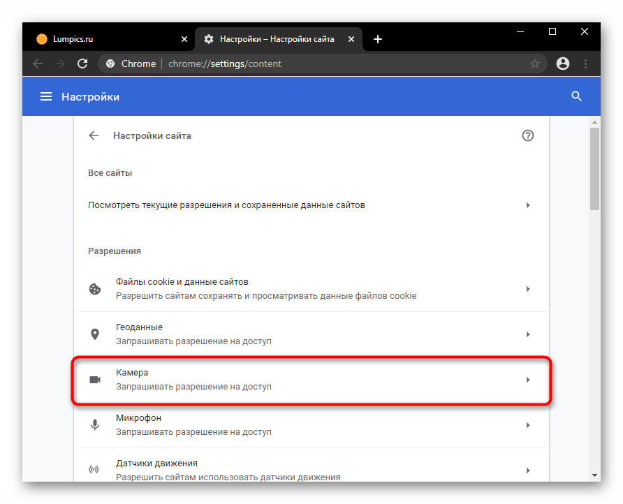 Метод 3. Разрешение доступа к камере в настройках браузера для всех сайтов