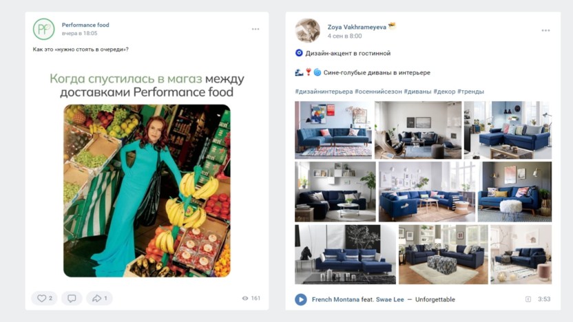 Рекламные публикации. Рассказывают и показывают товар, напоминают об акциях, скидках и распродажах, ведут на сайт или страницу с продуктом. По данным опроса «Анкетолога», почти половина респондентов из России хотя бы раз совершали покупки из-за рекламы в соцсетях. Чаще всего ищут одежду, электронику, медицинские товары и книги.