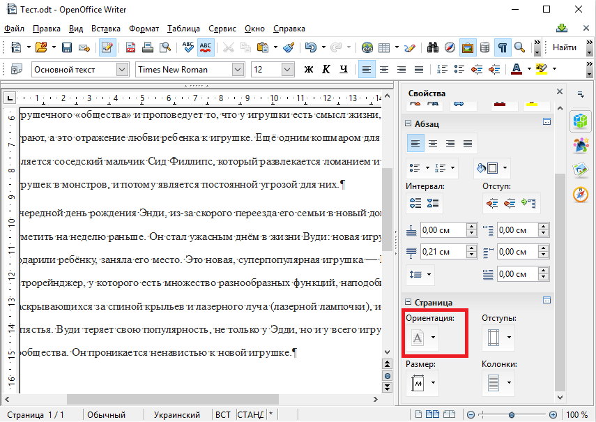 Изменение ориентации страницы в OpenOffice