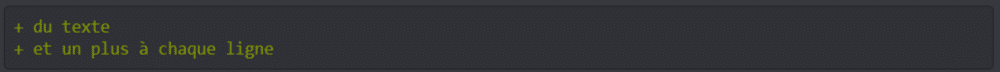 Язык «diff» был выбран зеленым благодаря его простоте и тому, что в начале текста не выглядит странно ставить плюс…