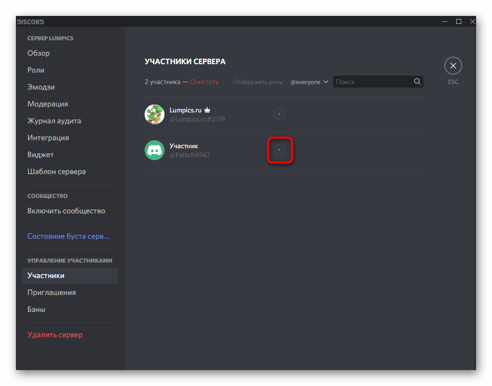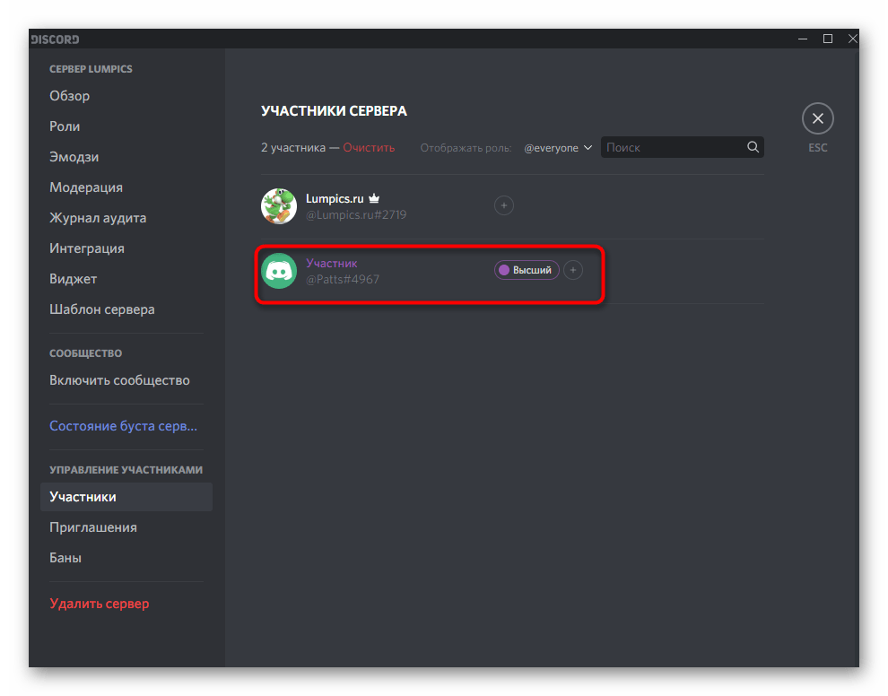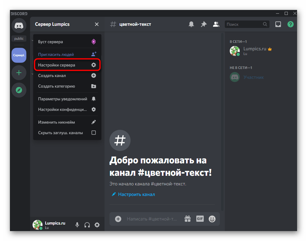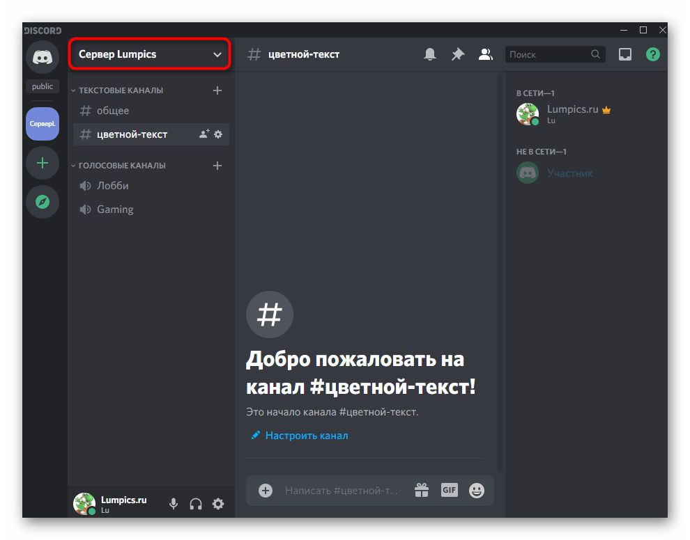 - Выбираем на платформе сервер, пользователи которого находятся, цвет никнейма которого хотим поменять на другой.