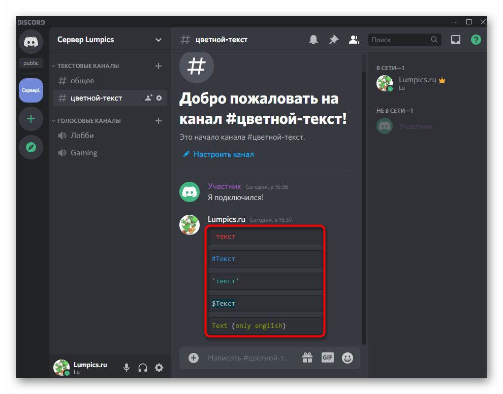 Теперь вы знаете, как применить цветной текст в Discord к имени в чате. Что касается сообщений, то здесь ситуация немного сложнее. Ниже мы остановимся на этом вопросе.
