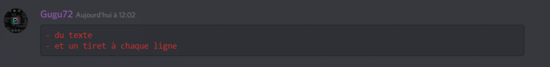 As we are exploiting the syntax highlighting, the colors you can use are limited. The steps for each color follow a similar format with you needing to enter three backticks at the start ( “` ), then return, then enter your text, return again, and finally three more backticks ( “` ).