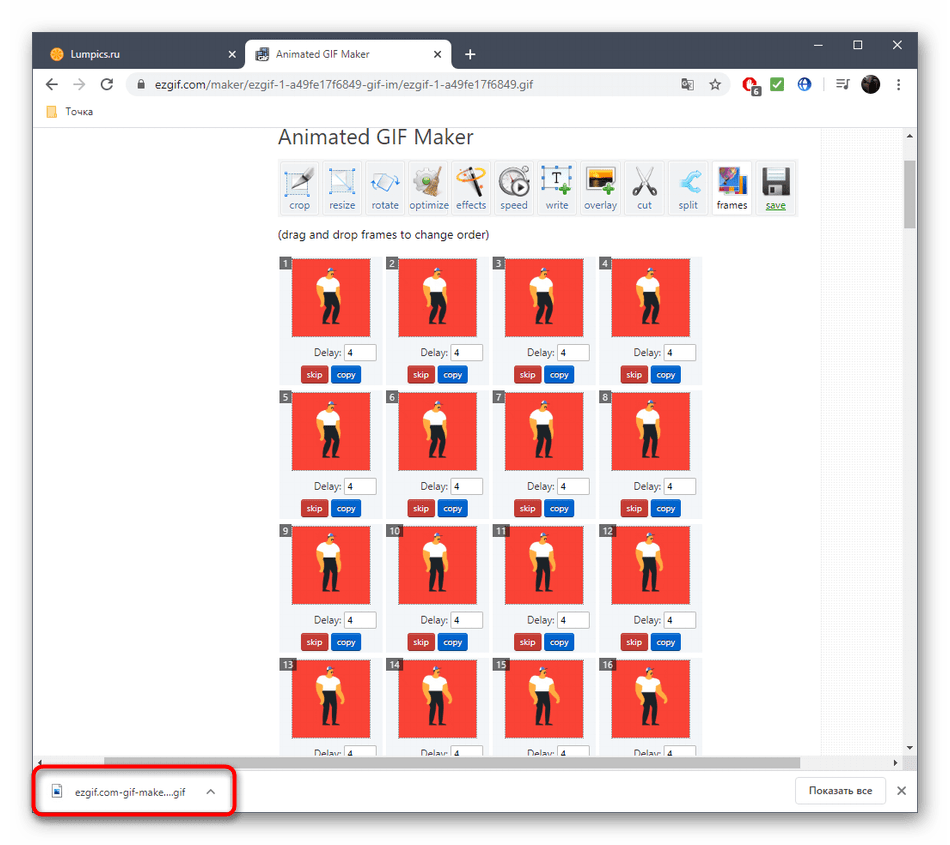 - Теперь можно сохранить готовую работу на компьютер, выбрав формат .gif и директорию сохранения.