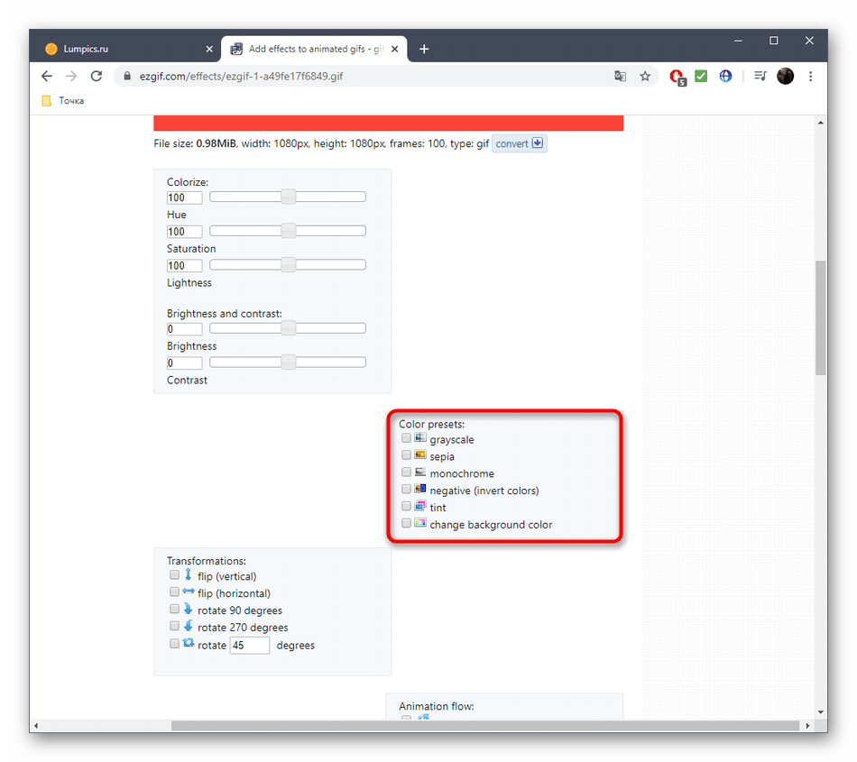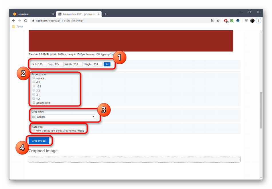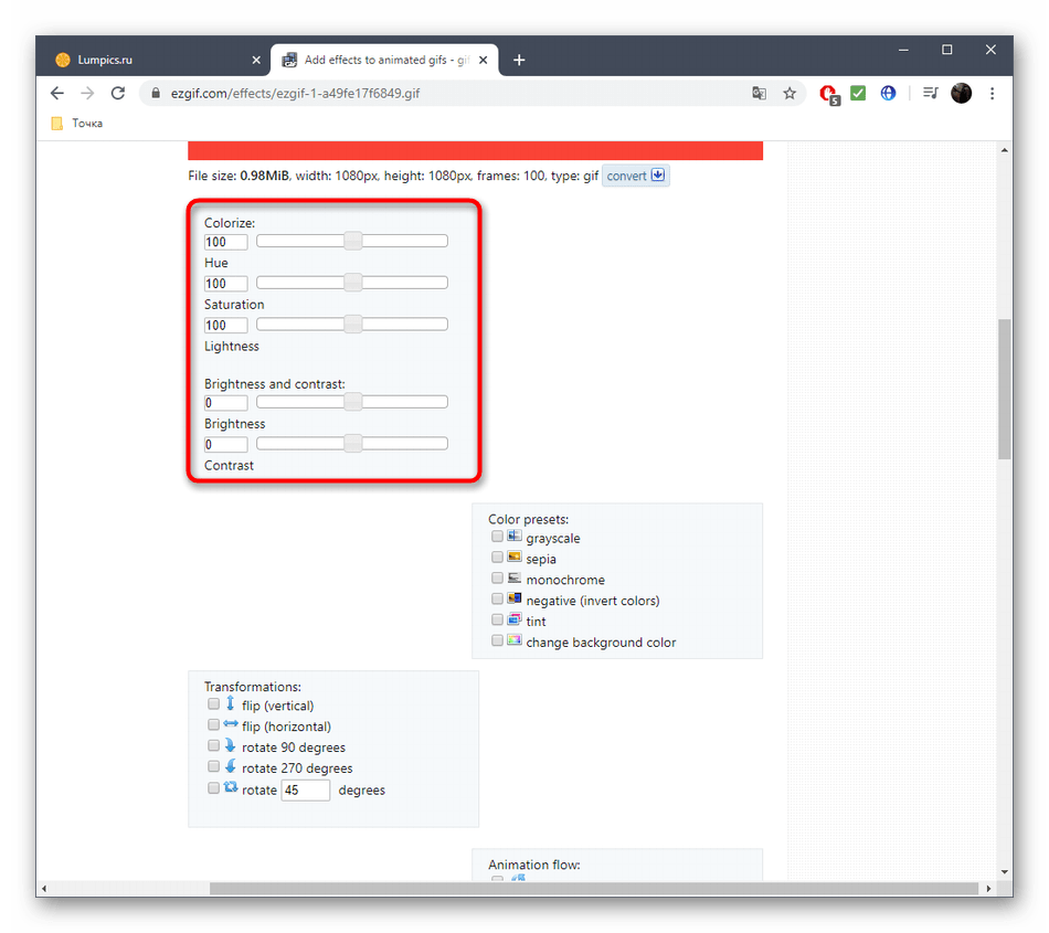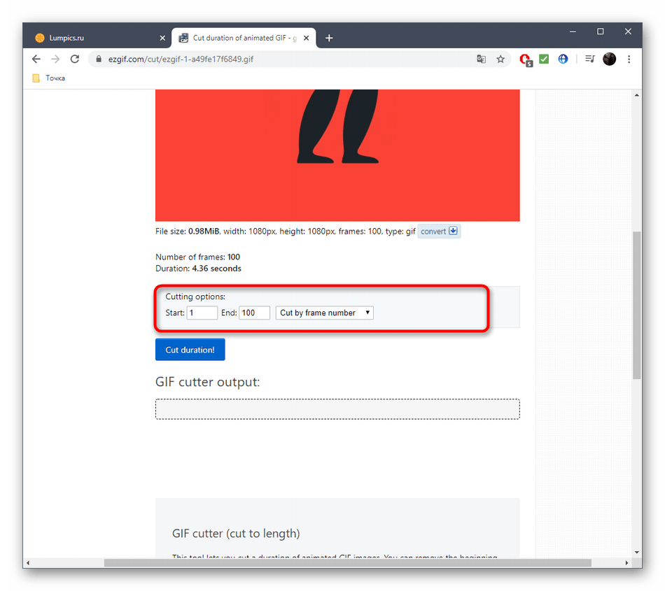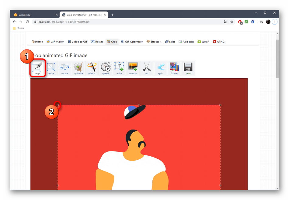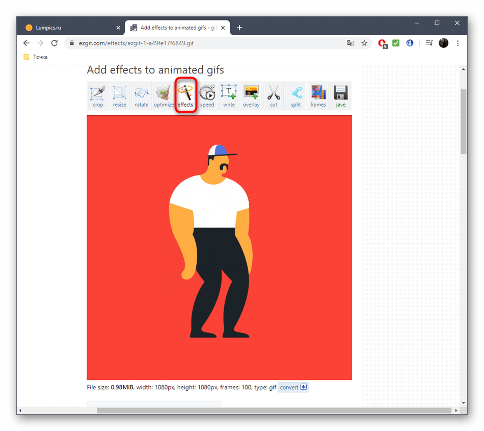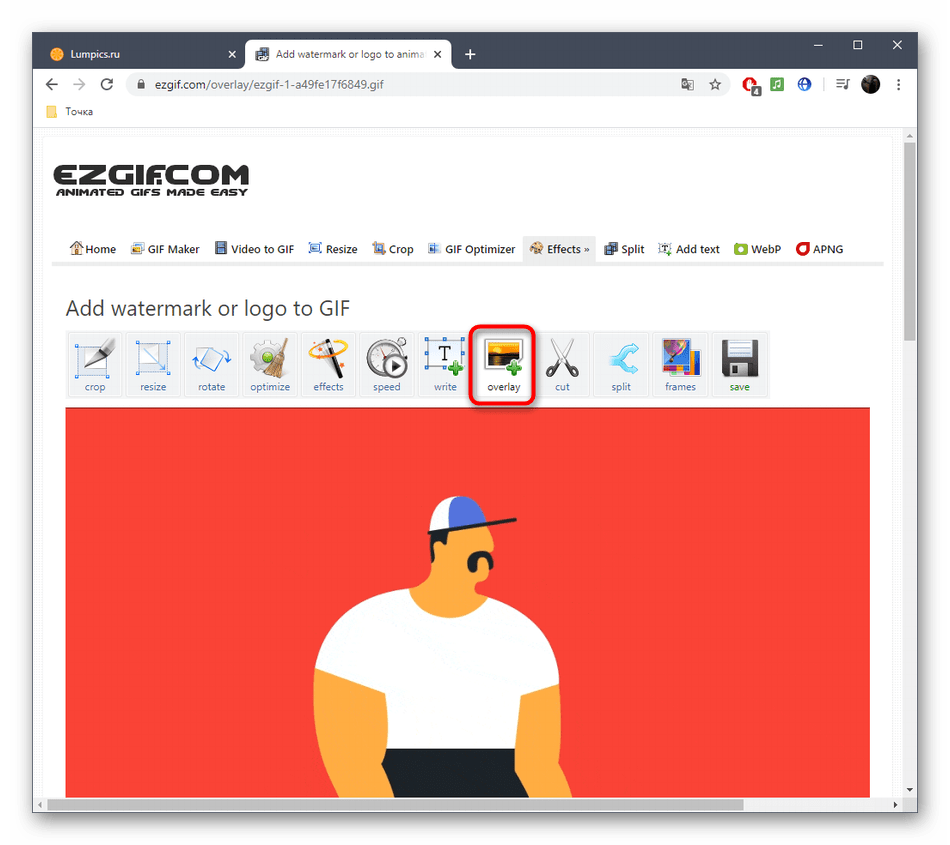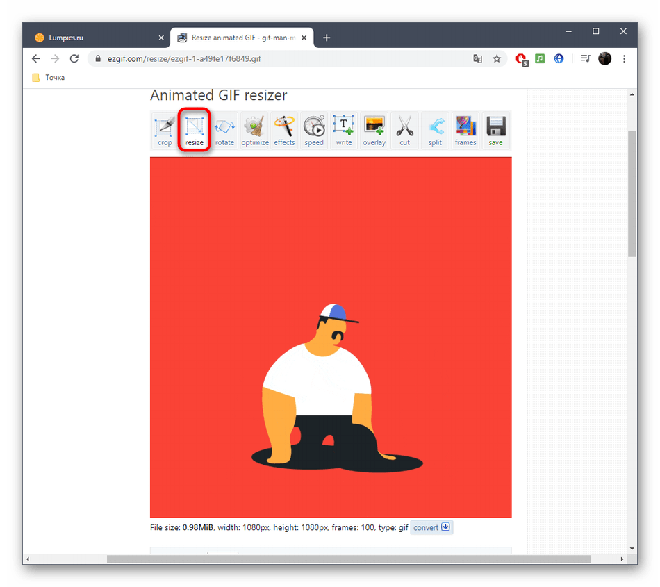 Веб-сайт Ezgif предоставляет возможности и инструменты для создания простых гифок. Интерфейс сайта поддерживает только английский язык и ведёт свою работу с 2012 года.