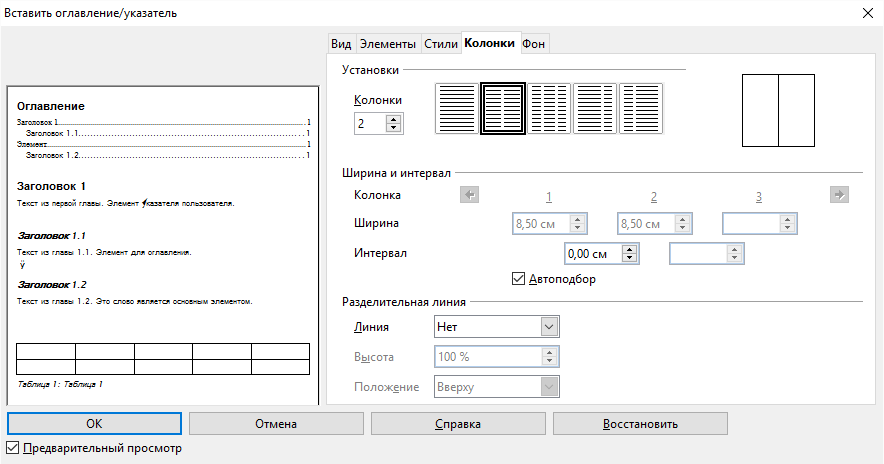 Более детально настроить внешний вид блока с содержанием получится с помощью вкладок Элементы, Стили, Колонки и Фон. Теперь вы знаете как сделать оглавление LibreOffice.