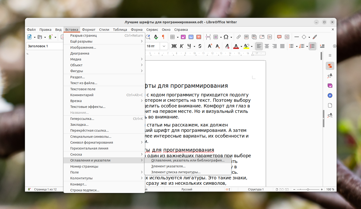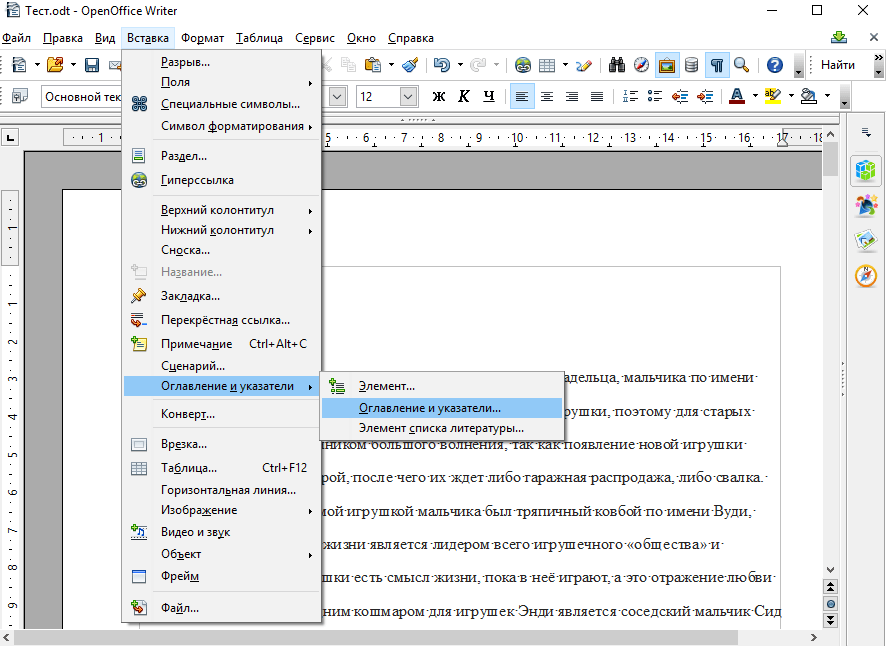 Создание оглавления в OpenOffice Writer