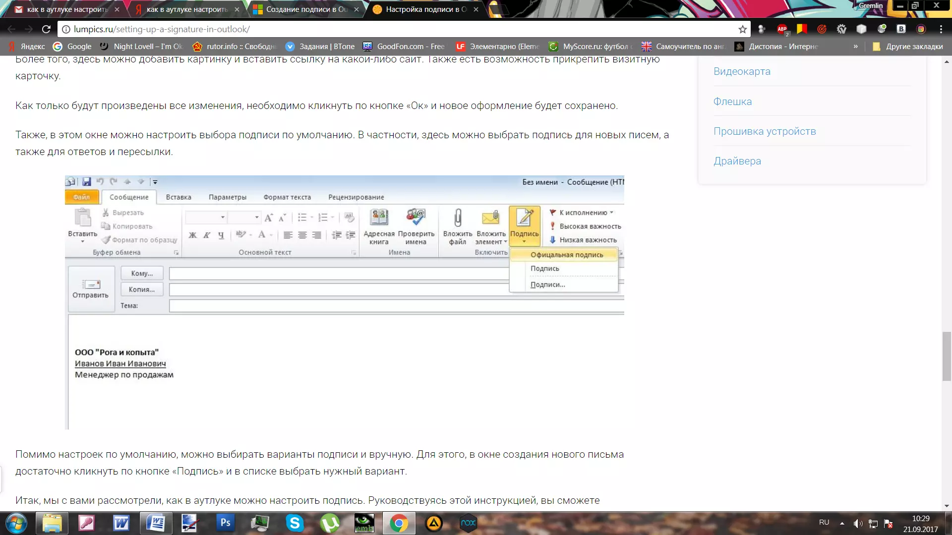 Как в аутлуке (Outlook) настроить подпись