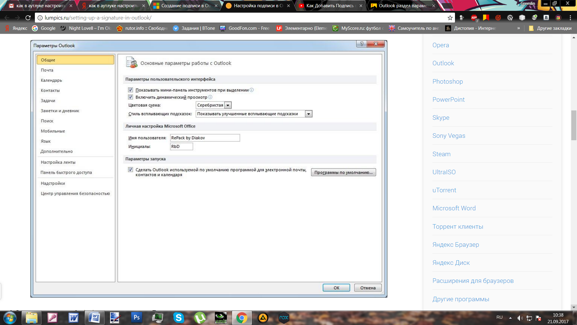 Как настроить подпись в Outlook 2016 и Gmail