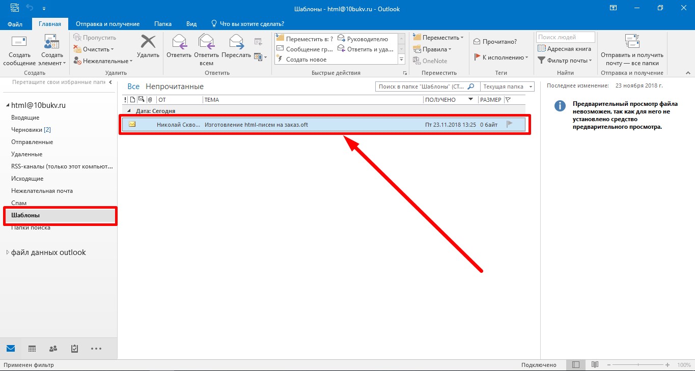 Использование инструмента «шаблон» для сохранения писем в html-формате