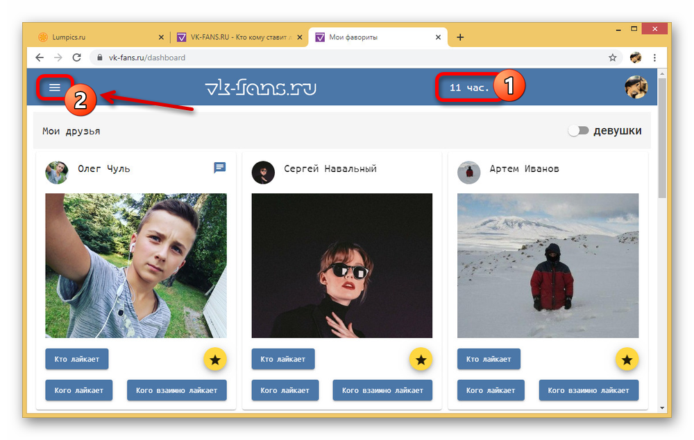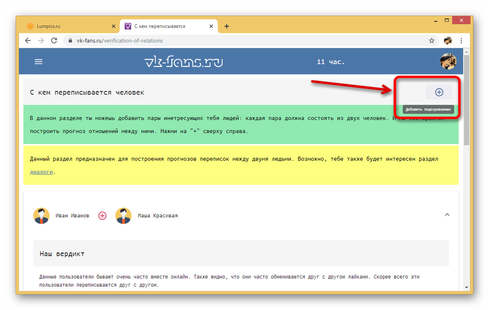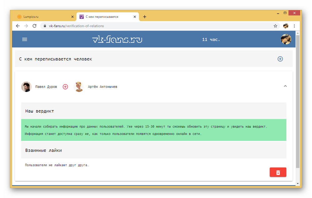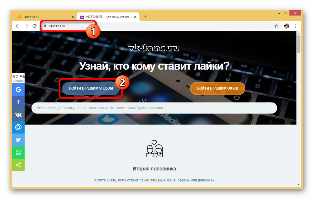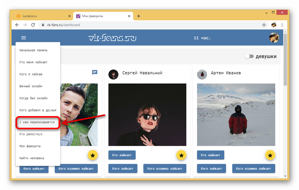 В отличие от предыдущего варианта, в данном случае придется воспользоваться одним из сторонних онлайн-сервисов, предоставляющих собственные услуги по динамическому отслеживанию страниц людей. Это позволяет проверить профиль человека на предмет общения с другими людьми, по сути, автоматизируя дополнительные проверки, требуемые в первом способе, будь то лайки и любая другая активность. Мы рассмотрим только один вариант сервиса VK-Fans, демонстрирующего вполне достойные показатели эффективности.
