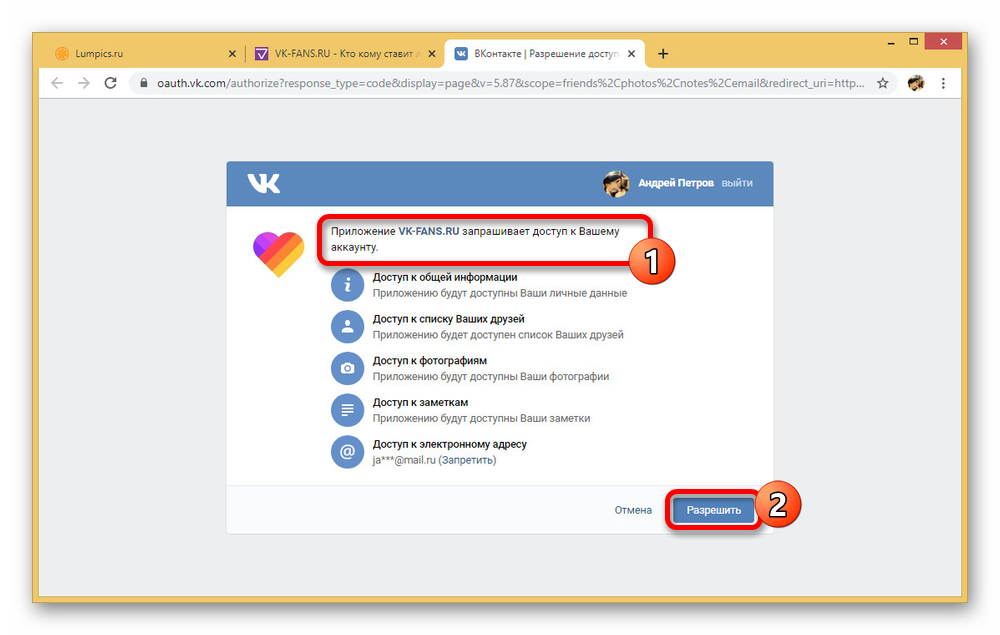 Предоставьте сервису доступ к данным вашего аккаунта. Это по большей части нужно для авторизации на сайте сервиса и доступа к ВК.