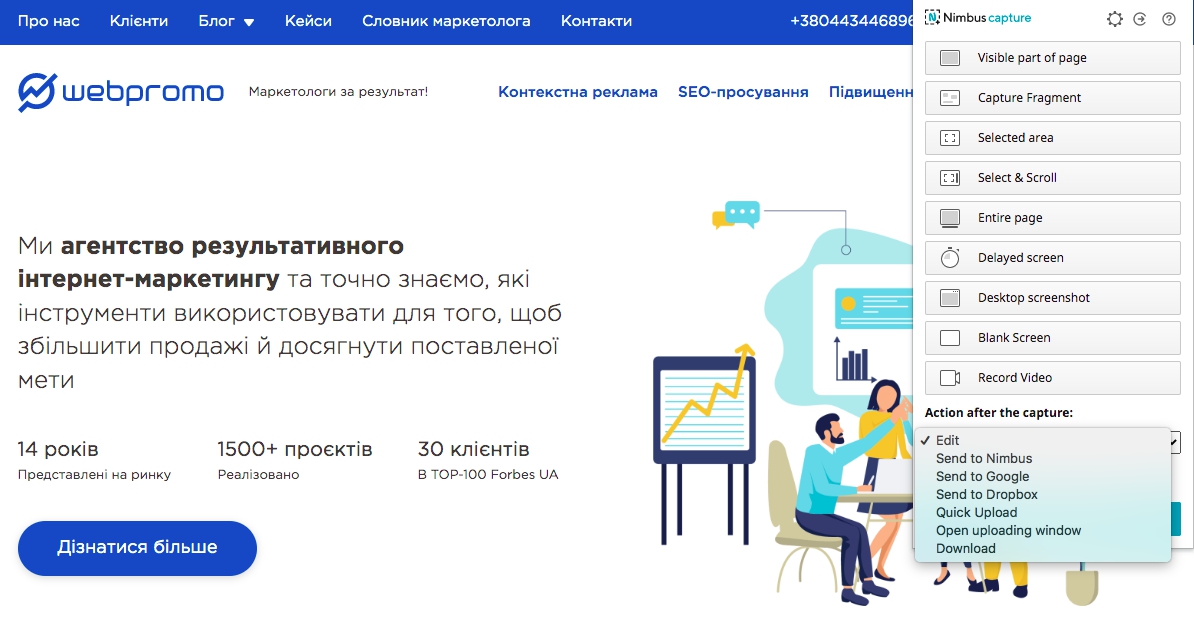 Чтобы сделать снимок экрана веб-страницы в Pikwy достаточно нескольких секунд: