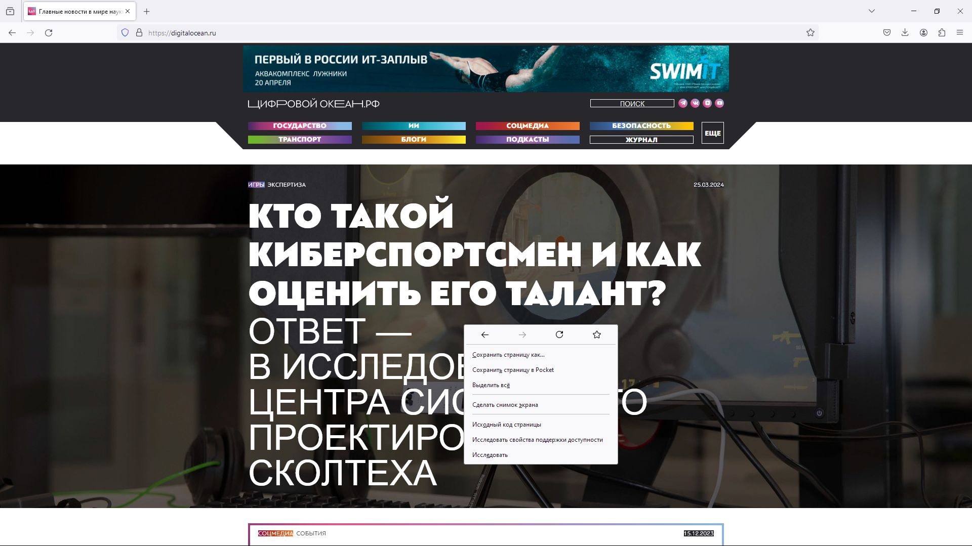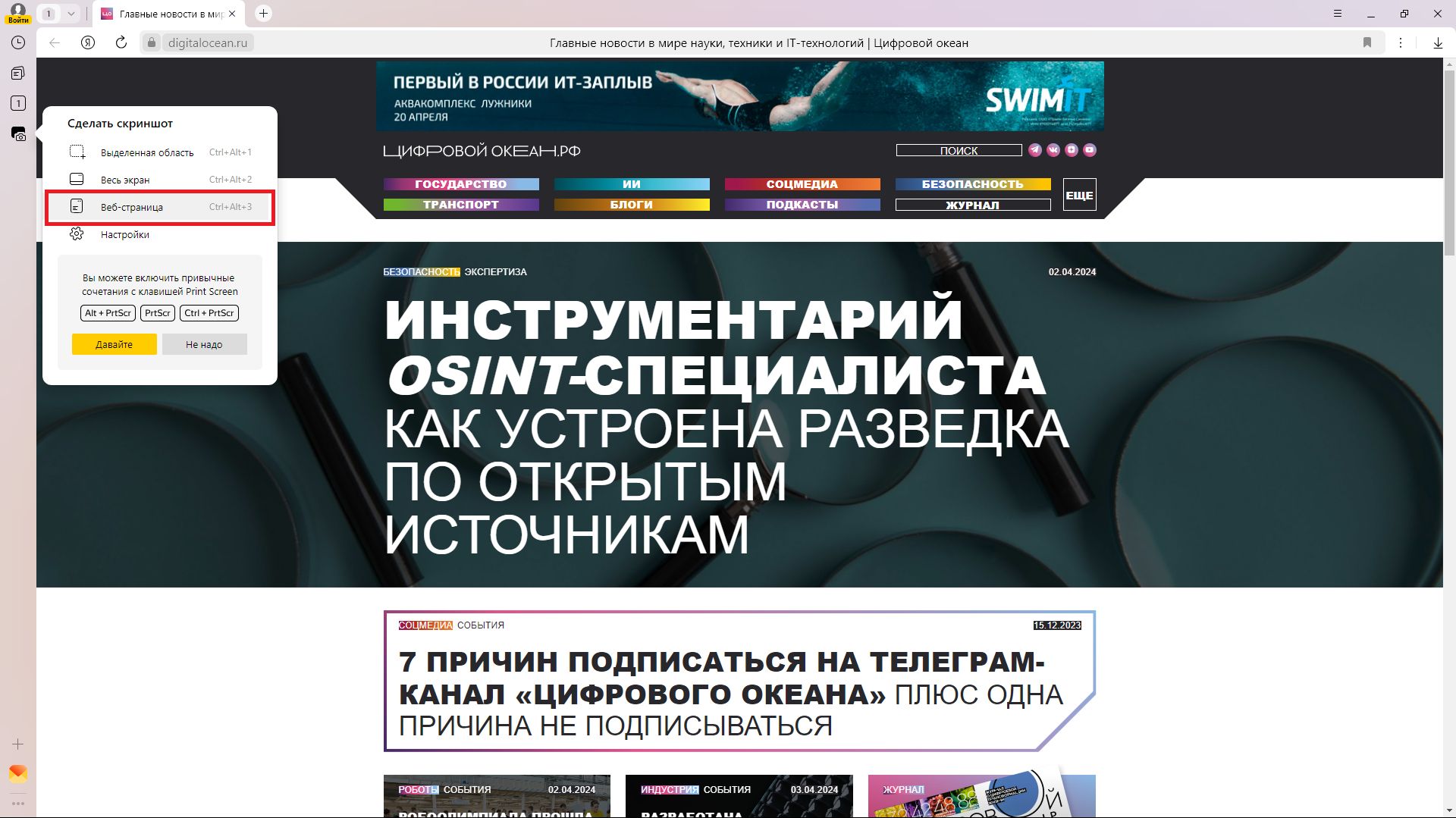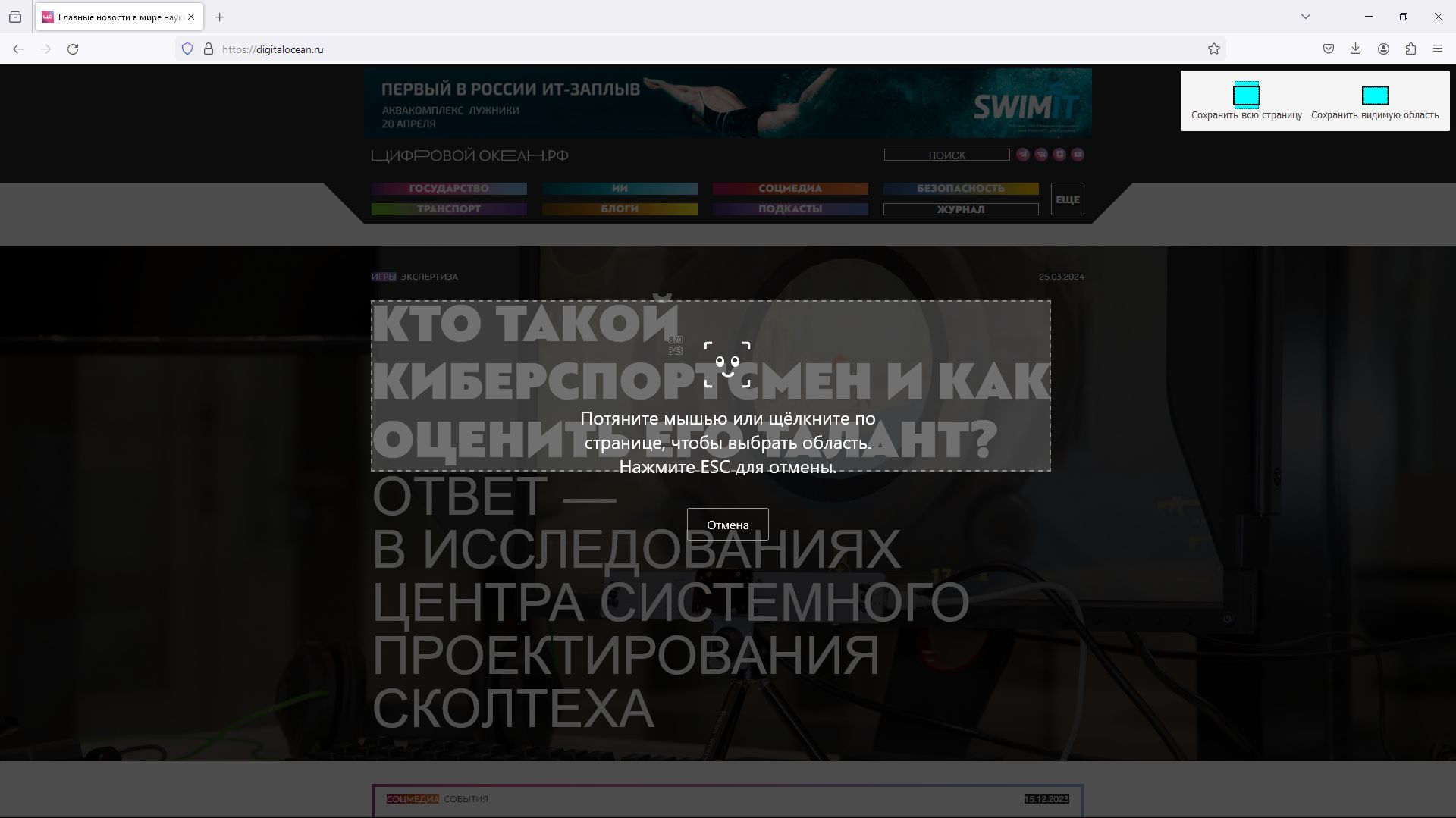 После выбора команды браузер сделает снимок веб-страницы. PNG-файл загрузится в папку «Загрузки».