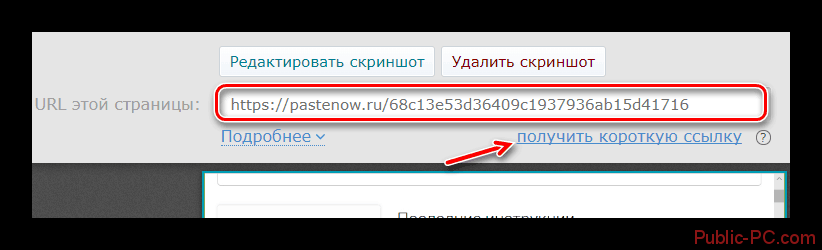 При необходимости можете отправить скриншот другому пользователю, скопировав ссылку в графе «URL этой страницы». Адрес можно значительно уменьшить, если воспользоваться функцией «Получить короткую ссылку».