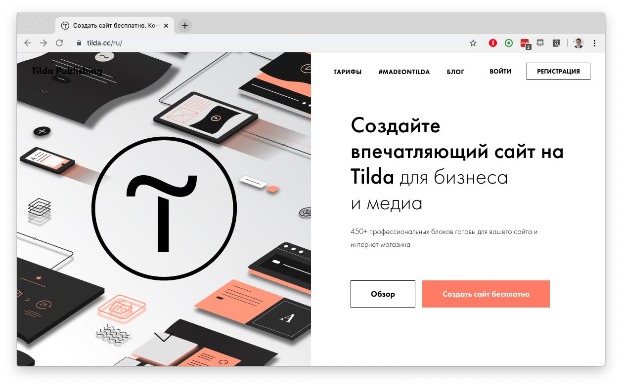 Тилда известна многим дизайнерам, так как является очень популярным сервисом для создания различного рода презентационных проектов. Первая презентация для каждого пользователя бесплатная, далее придется оплачивать подписку от 10 долларов каждый месяц. Главной особенностью является тот факт, что страницы можно преобразить в формат PDF.