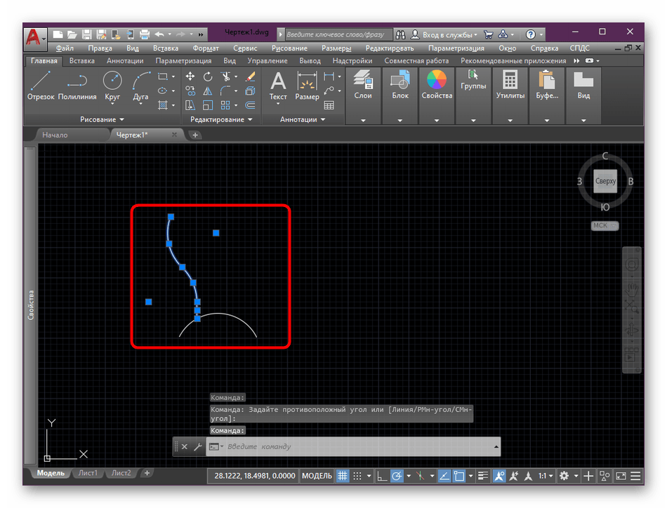 Скруглим углы прямоугольника. Вызовите команду и выберите опцию «Полилиния». Система отобразит запрос:
