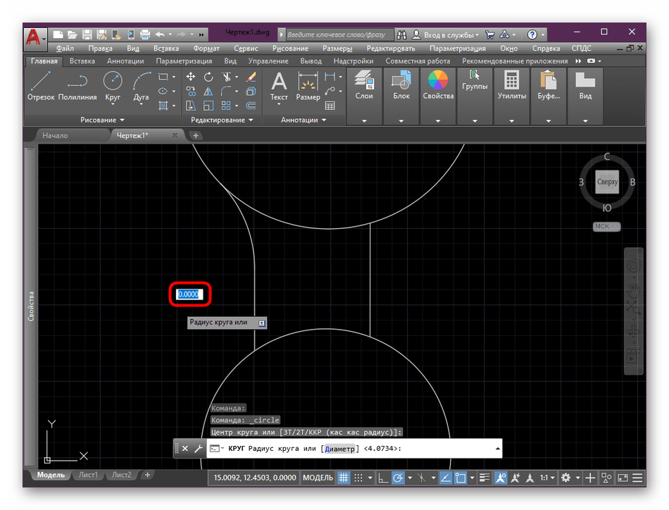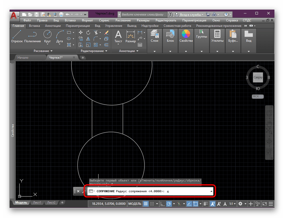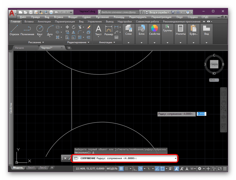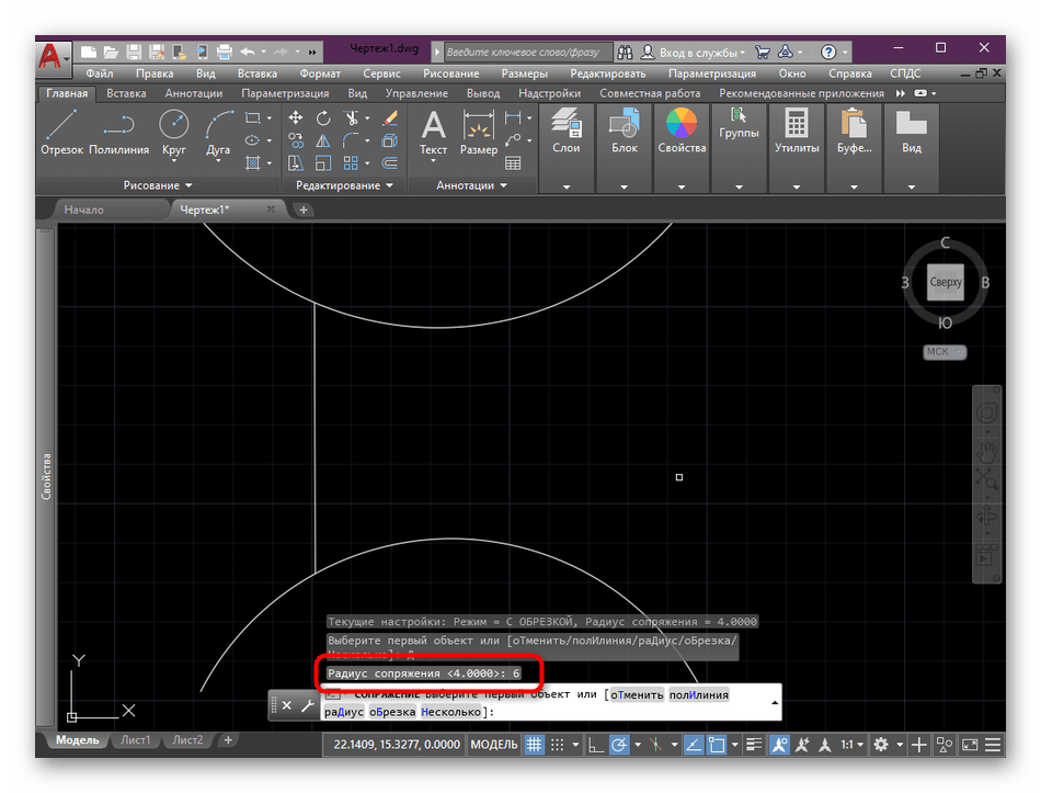 - Задать числовое значение радиуса, отличное от нуля. Нажать Enter.