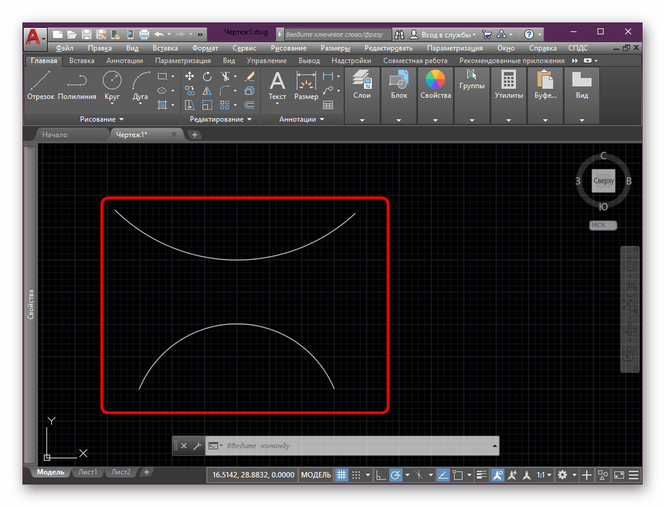 - Выбрать второй объект в графическом пространстве. Нажать Enter.