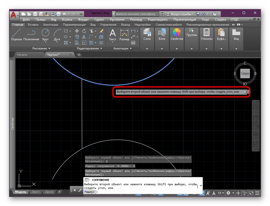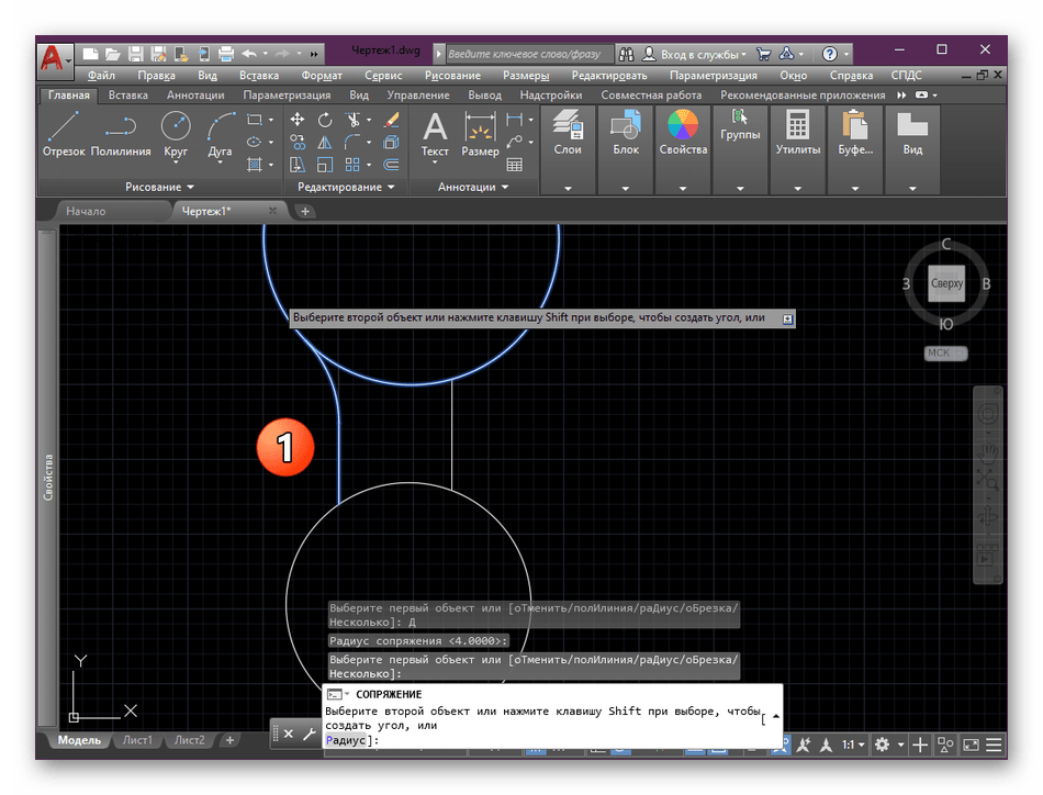 Практически каждый пользователь при работе с различными чертежами в AutoCAD сталкивается с необходимостью скругления углов. Этот процесс еще называется сопряжение и осуществим он одним из доступных методов — путем применения соответствующего инструмента или через самостоятельное скругление посредством вспомогательных объектов. Данные способы выполняются по-разному и имеют определенный алгоритм действий. Мы предлагаем ознакомиться с ними более детально, чтобы выбрать удобный для себя вариант или всегда иметь альтернативу в случае когда один вариант не помогает создать нужный эффект.