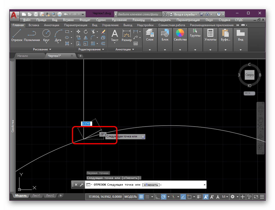 Этим образом вы можете работать практически с любыми углами, изменяя при этом радиус круга так, чтобы он подходил под размер будущего скругленного угла. Однако в некоторых случаях такой метод будет сложно реализовать, потому придется все-таки прибегать к использованию первого, редактируя при этом имеющиеся отрезки для корректного автоматического сопряжения.