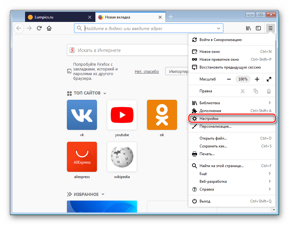 - В выпадающем меню выберите «Настройки» или «Параметры».