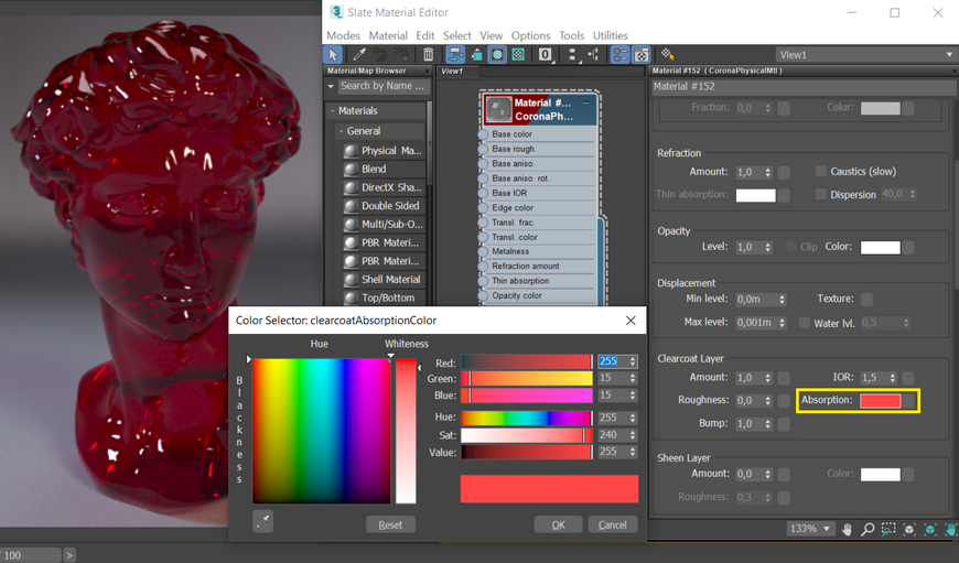 Поэтому разработчики добавили очень интересное свойство – Clearcoat Layer. По сути, это добавление на поверхность слоя лака. Это помогает немного обмануть программу для достижения лучшего внешнего вида материала.