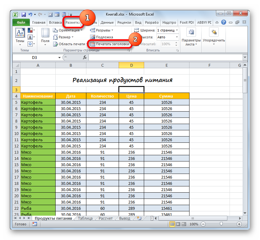 Созданную в Excel табличку с данными обычно распечатывают для дальнейшего использования. При печати часто требуется, чтобы заголовок таблицы был на каждом распечатанном листке. В Excel такую возможность реализовать можно с помощью стандартных инструментов, встроенных в программное обеспечение. Причем название табличного массива потребуется ввести только один раз, а далее оно автоматически продублируется на всех листах. Чтобы заголовок распечатывался на каждой странице, нужно проделать следующие манипуляции: