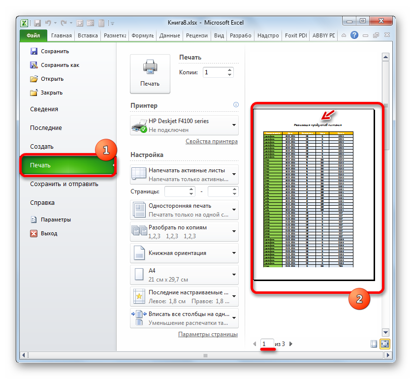 - Проверить отображение названия таблицы при ее печати. Для этого сначала необходимо кликнуть по слову «Файл», расположенному в левом верхнем углу Microsoft Office Excel.