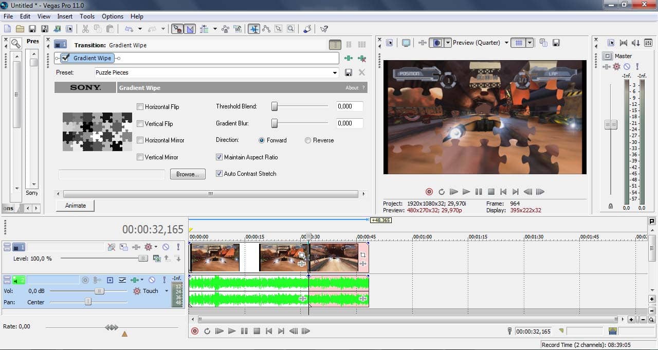 Как сделать эффект затухания музыки в программе Sony Vegas?
