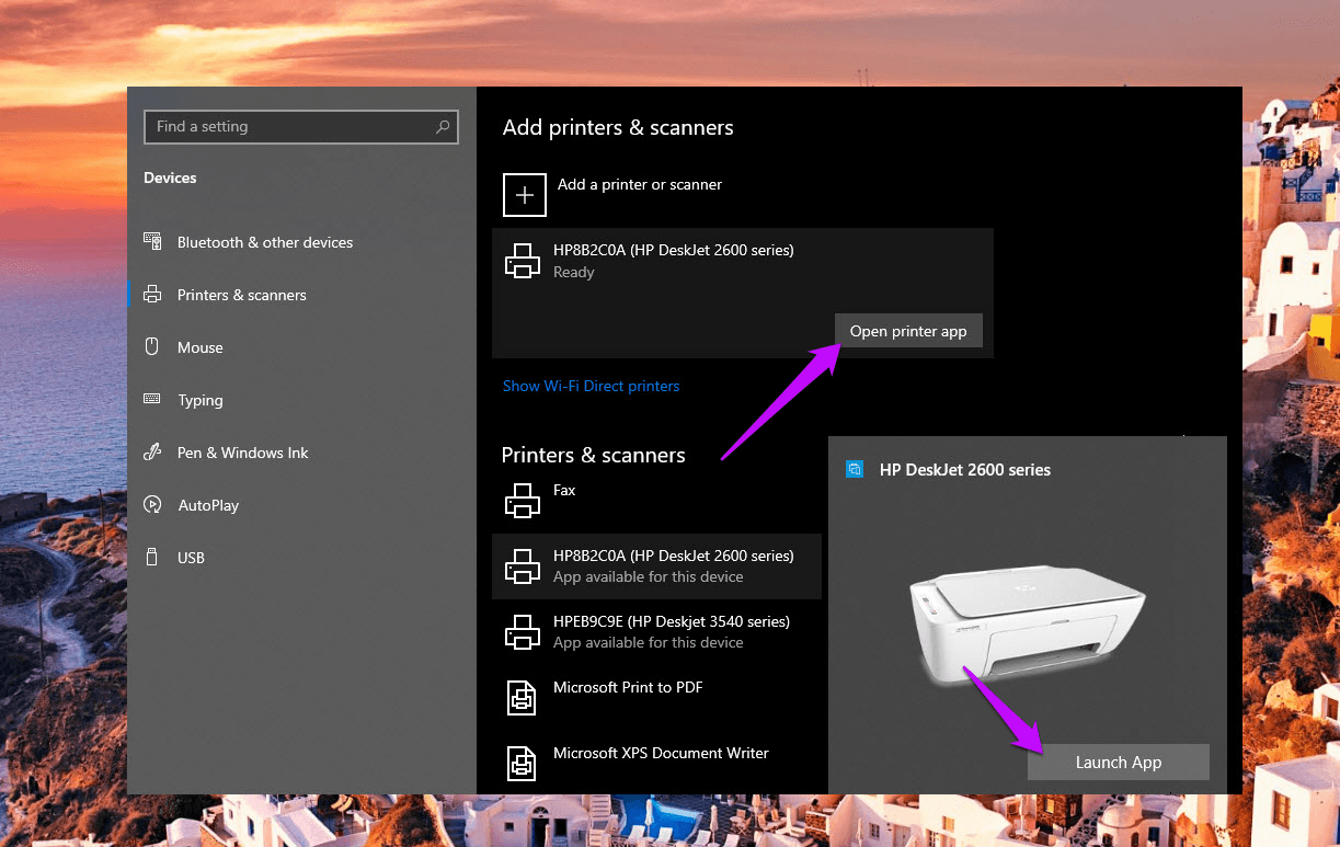 Как только вы нажмете кнопку «Добавить устройство», вы увидите окно запуска приложения (или кнопку «Открыть приложение принтера»).