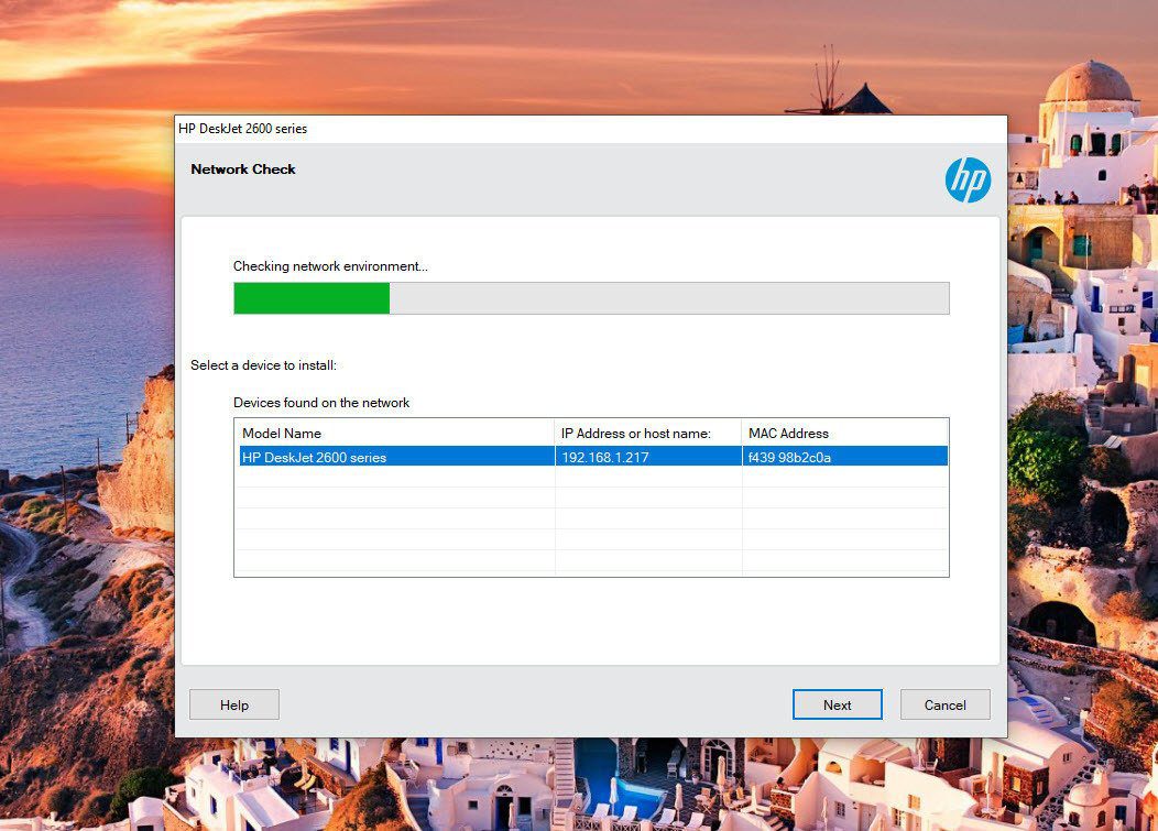 На этом этапе убедитесь, что и ПК, и принтер подключены к одной и той же сети Wi-Fi. После завершения сканирования принтер DeskJet 2600 появится в меню.
