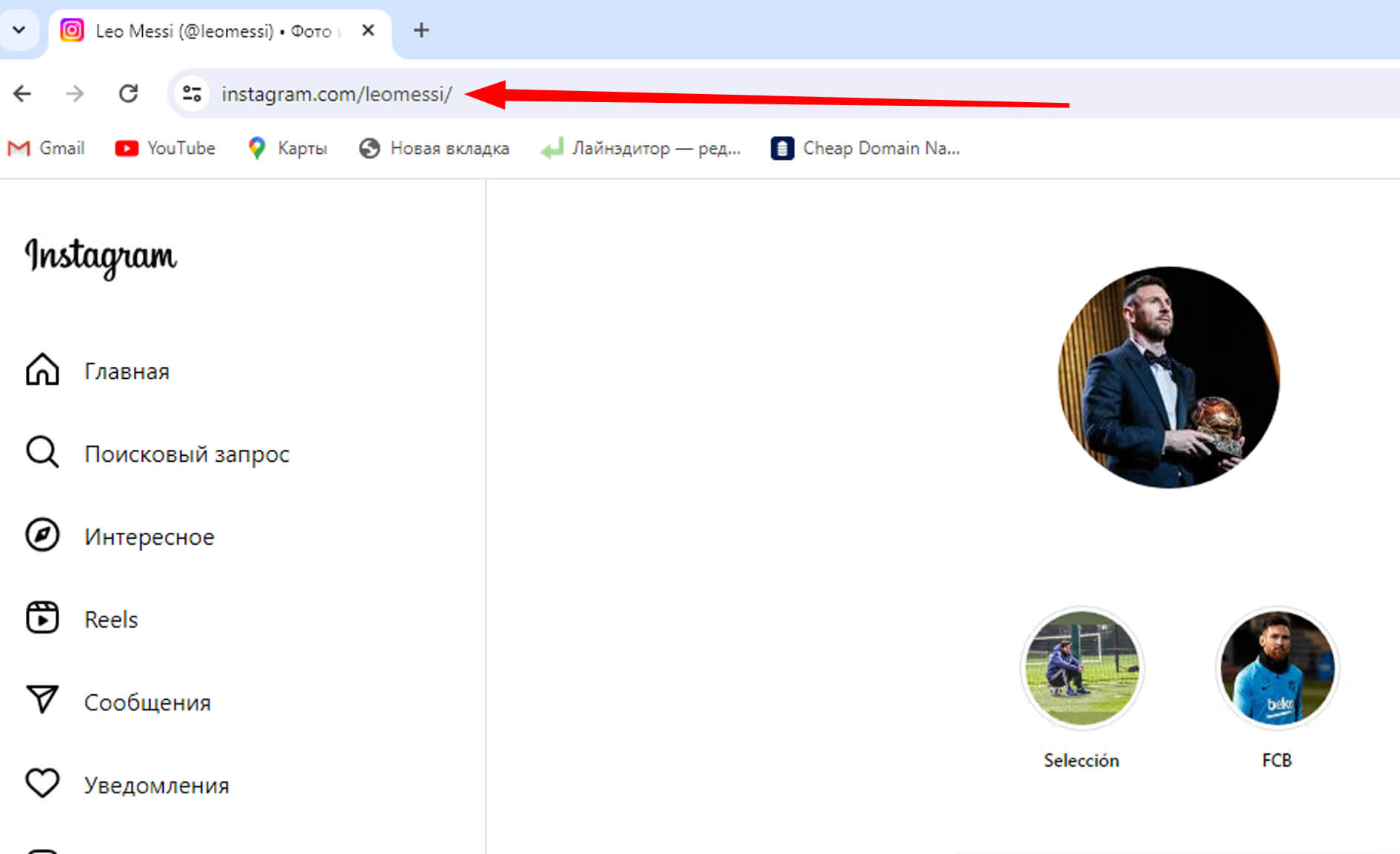 Если вы сидите в веб-версии Instagram, то найти ссылку на аккаунт можно там же, где находится URL-адрес любого другого сайта, то есть в соответствующей строке сверху.