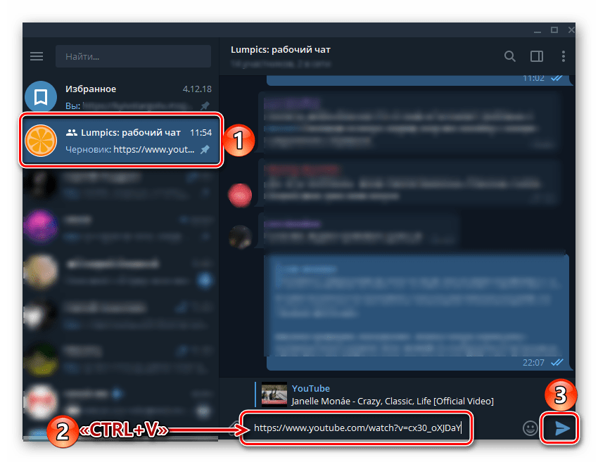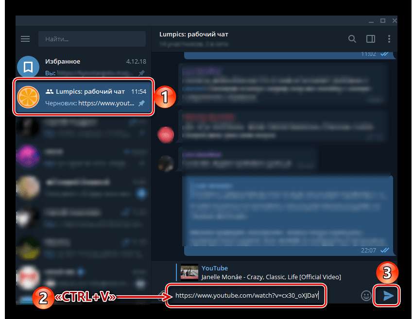 В случае, когда не годится ни одна из перечисленных выше иконок, есть команда «Копировать» (цифра 2 на рис. 2). Клик по этой команде позволяет скопировать ссылку на ролик в буфер обмена. После этого предстоит открыть то место, куда ссылка должна быть помещена и поставить туда курсор мыши. Для вставки ссылки из буфера обмена достаточно нажать на клавиши Ctrl+V («вставить»).