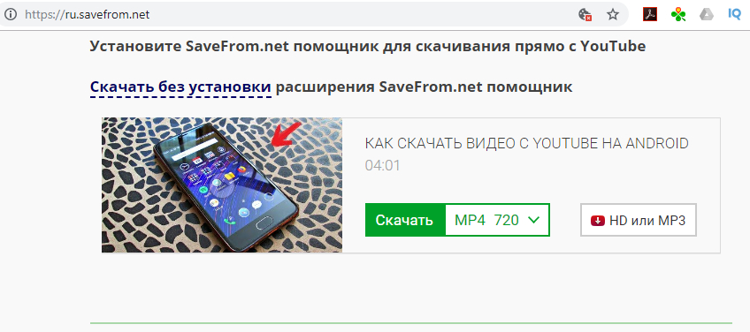 Еще есть один простой способ скачать видео с Ютуба на телефон Андроид с помощью сервиса SaveFrom. Для этого нужно выполнить следующее: