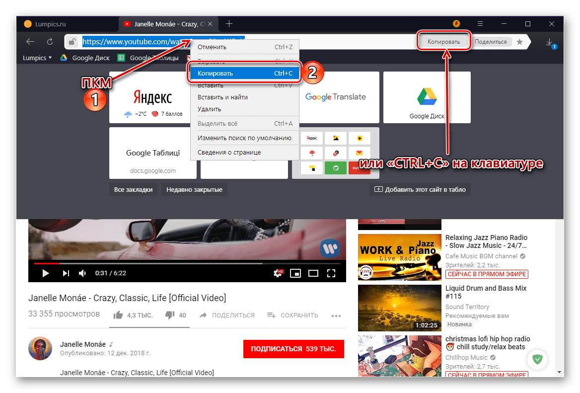 Независимо от того, какой веб-браузер используется для доступа к Интернету в целом и к официальному сайту YouTube в частности, вы можете получить ссылку на интересующее видео тремя разными способами. Главное — выйти из полноэкранного режима, прежде чем продолжить действия, описанные ниже.