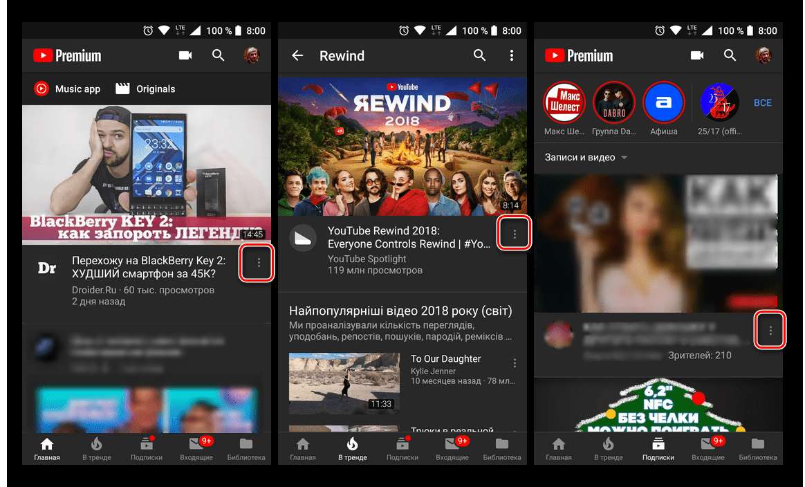 - Тапните по трем вертикальным точкам, размещенным справа от наименования ролика.