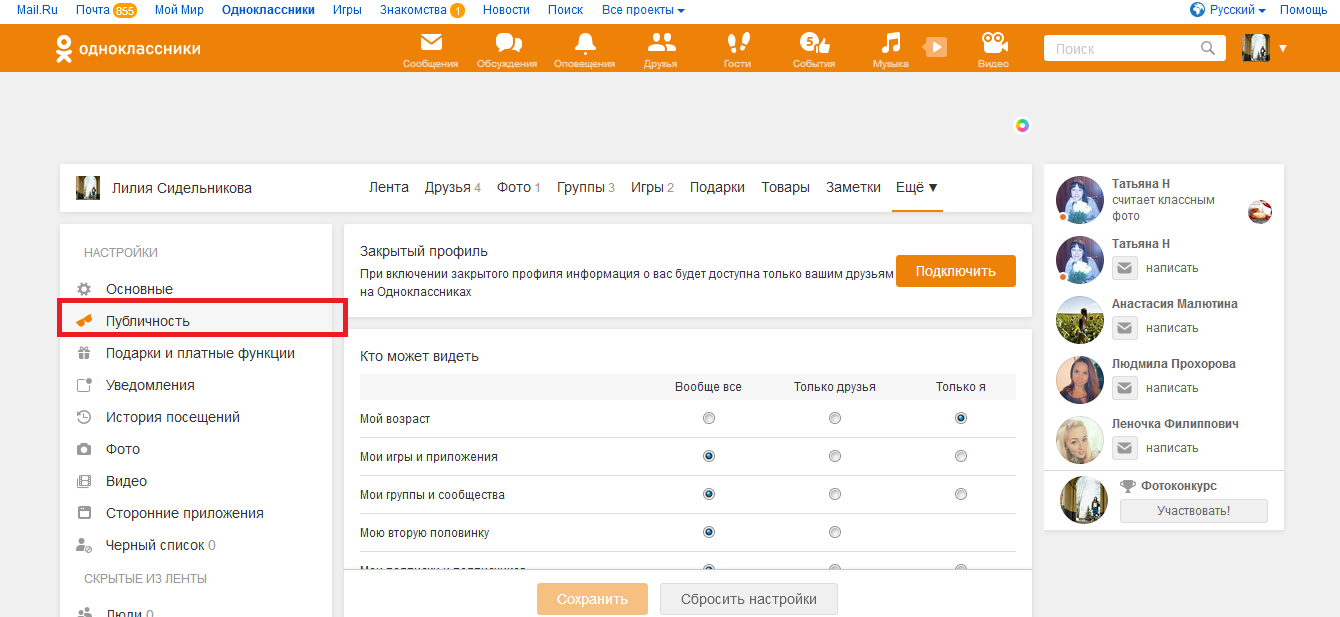 Как скрыть от посторонних глаз список друзей в Одноклассниках?