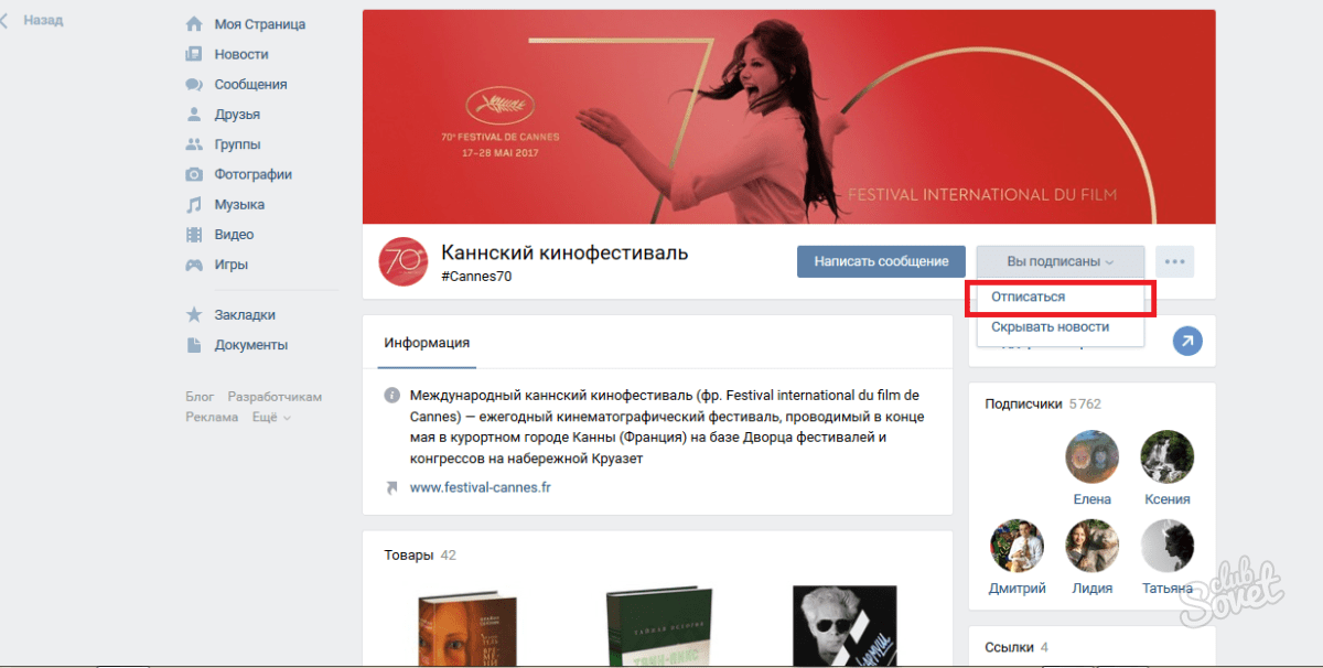 - Итак, заходим в сообщество и нажимаем «Отписаться».