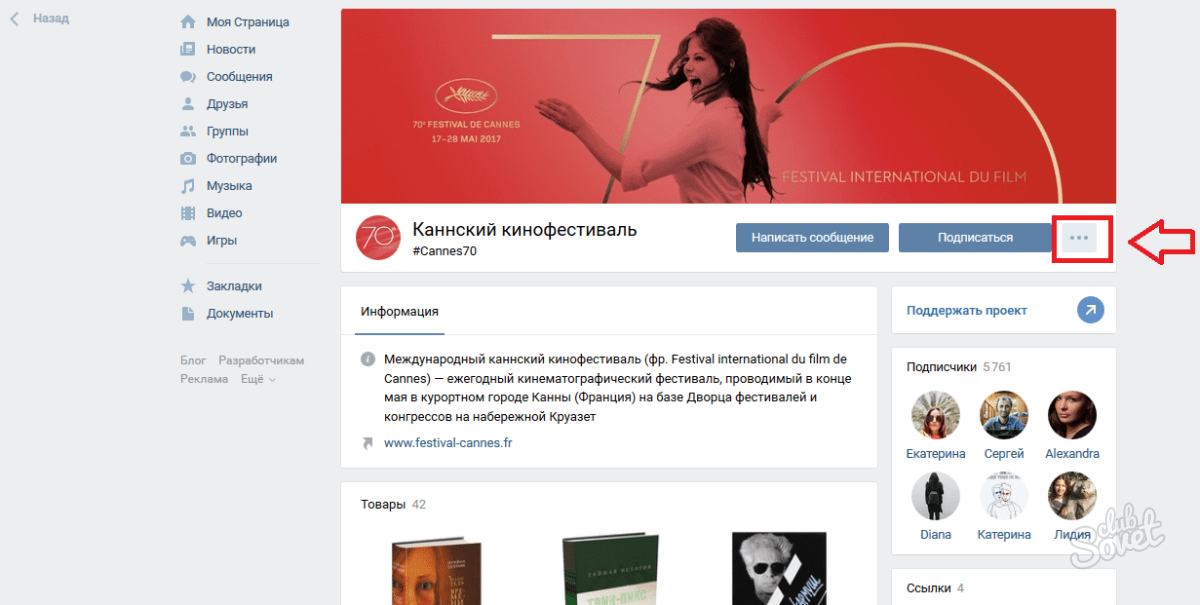 После отписки следует нажать на кнопку «Еще» в правом меню паблика.