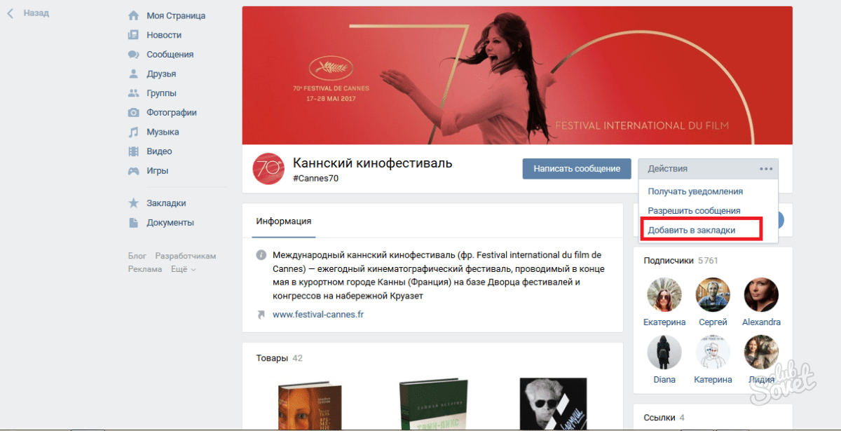 - После этого жмем на ссылку «Добавить в закладки», которая находится чуть ниже меню подписки и отписки.