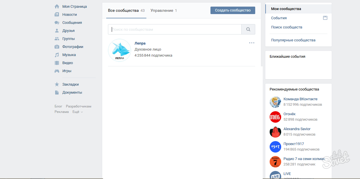Зайдите в раздел “Группы”, в котором находятся не только группы, но и сообщества.