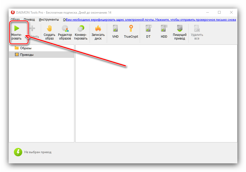 - Откройте программу и воспользуйтесь пунктом «Монтировать».