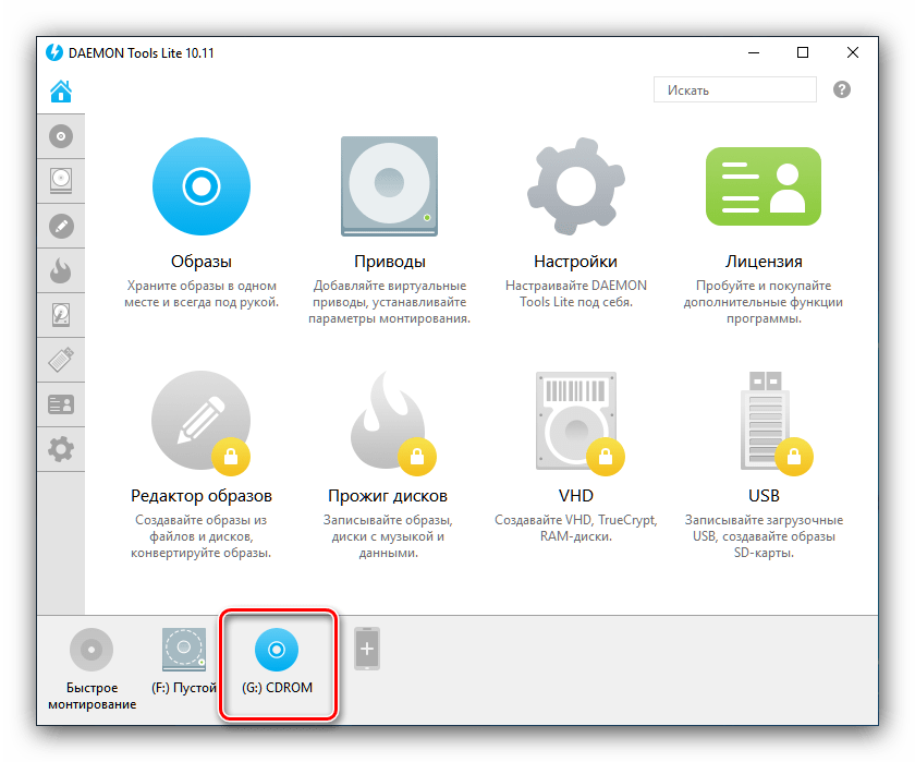 Теперь перейдем непосредственно к тому, как пользоваться данной утилитой. В первую очередь рассмотрим, как смонтировать образ игры. Но для начала нам потребуется создать собственный привод.