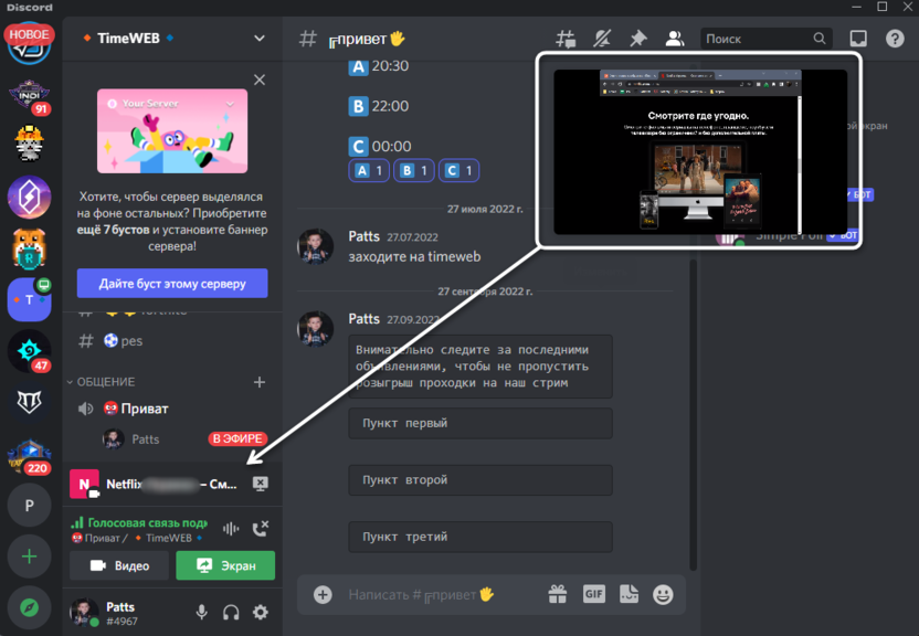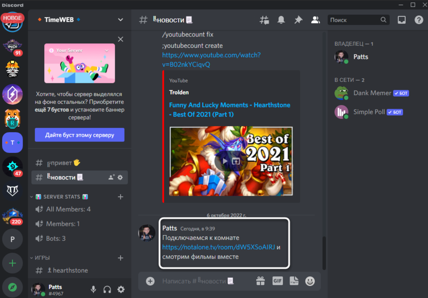 Совместный просмотр фильмов в Discord через сторонние онлайн-сервисы