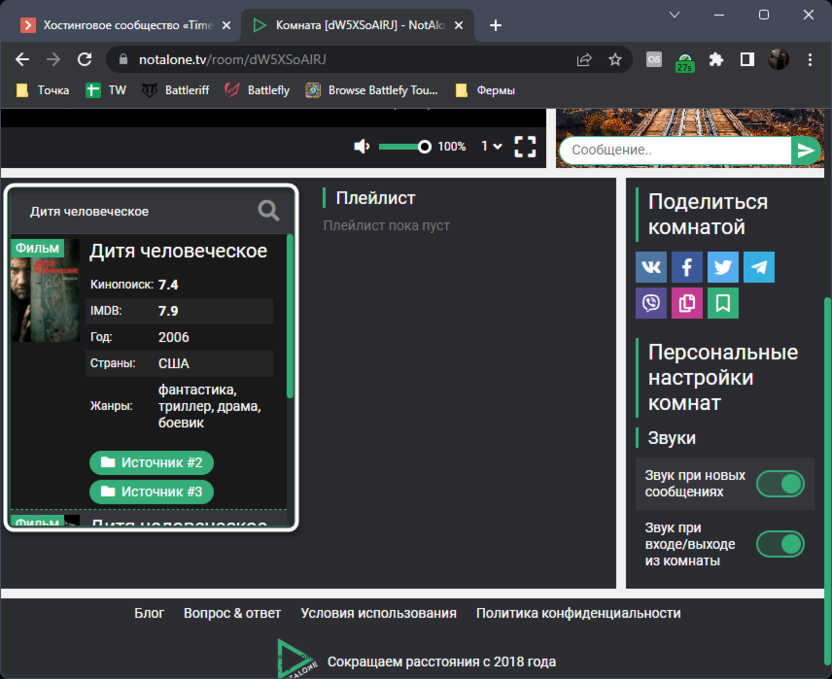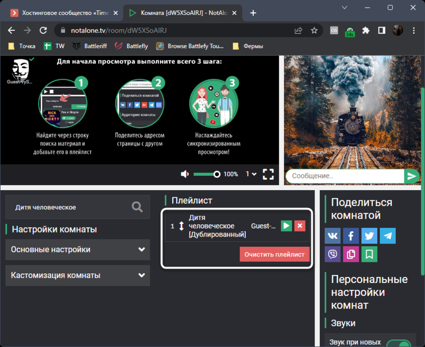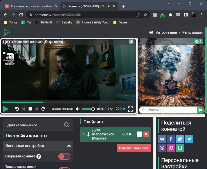 - Теперь можете переключиться к браузеру или плееру, чтобы стрим случайно не прекратился, и начать просмотр выбранного фильма вместе с другими пользователями.