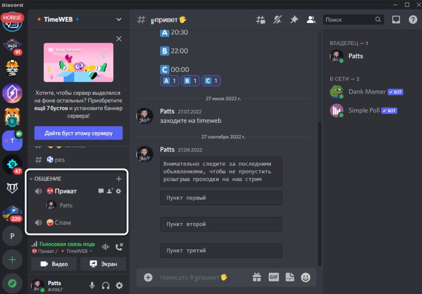 Выбирайте подходящий для себя метод, организуйте совместные просмотры фильмов в Дискорде и не забывайте о том, что на своих серверах вы можете создавать отдельные комнаты, в которых и будет происходить просмотр. Это позволит избежать флуда в общих каналах и разгрузить их, если на сервере присутствует много человек.