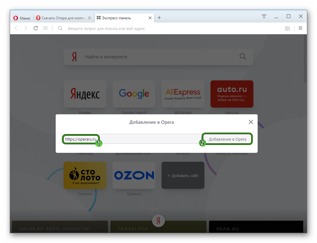 Чтобы добавить закладку в экспресс-панель управления в Opera, нажмите на пустую плитку с заголовком «Добавить сайт», добавьте ссылку на нужный интернет-ресурс и нажмите кнопку «Добавить Opera».